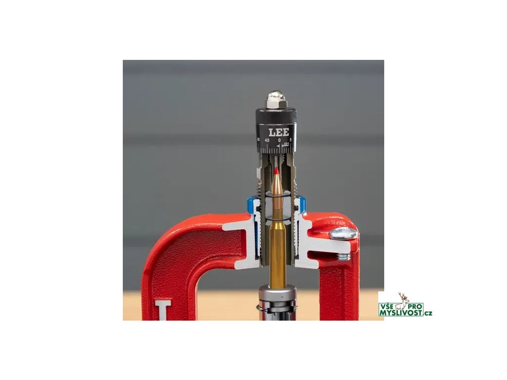 MIKROMETRICKÁ USAZOVACÍ MATRICE (Micrometer Bullet Seating Die) je určena pro precizní přebíjení nábojů. Díky mikrometrické hlavě s laserově gravírovanou stupnicí umožňuje přesnou regulaci hloubky usazení střely s přesností na tisícinu palce – stejně jako u špičkových mikrometrů. Tělo matrice je navrženo jako tzv. Dead length seating die, takže matrice dosedá na shell holder, což zaručuje přesnou a jednotnou hloubku usazení střely při každém cyklu. Klíčovým prvkem je plovoucí vodítko střely (Floating Bullet Guide), které zajišťuje, aby hrdlo nábojnice a střela byly během usazování vedeny v dokonalé ose. Tento díl má radiální vůli, která umožňuje ideální vycentrování vodítka i nábojnice vůči usazovacímu šroubu. Usazovací dřík (Bullet seating stem) je precizně obráběný a leštěný tak, aby nedocházelo k poškození ani k otlačení střely – bez ohledu na její tvar. Plovoucí vodítko střely je oboustranné – po jeho vyšroubování a otočení umožňuje matrice současné usazení střely a zalisování krčku nábojnice (seating + crimping) – jedinečná funkce, kterou nabízí pouze značka Lee.