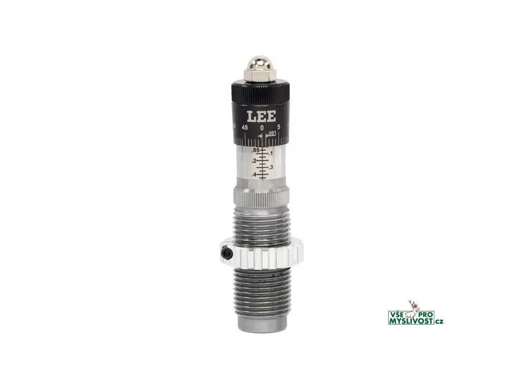 MIKROMETRICKÁ USAZOVACÍ MATRICE (Micrometer Bullet Seating Die) je určena pro precizní přebíjení nábojů. Díky mikrometrické hlavě s laserově gravírovanou stupnicí umožňuje přesnou regulaci hloubky usazení střely s přesností na tisícinu palce – stejně jako u špičkových mikrometrů. Tělo matrice je navrženo jako tzv. Dead length seating die, takže matrice dosedá na shell holder, což zaručuje přesnou a jednotnou hloubku usazení střely při každém cyklu. Klíčovým prvkem je plovoucí vodítko střely (Floating Bullet Guide), které zajišťuje, aby hrdlo nábojnice a střela byly během usazování vedeny v dokonalé ose. Tento díl má radiální vůli, která umožňuje ideální vycentrování vodítka i nábojnice vůči usazovacímu šroubu. Usazovací dřík (Bullet seating stem) je precizně obráběný a leštěný tak, aby nedocházelo k poškození ani k otlačení střely – bez ohledu na její tvar. Plovoucí vodítko střely je oboustranné – po jeho vyšroubování a otočení umožňuje matrice současné usazení střely a zalisování krčku nábojnice (seating + crimping) – jedinečná funkce, kterou nabízí pouze značka Lee.