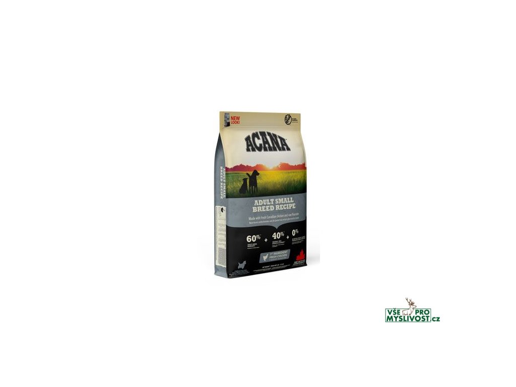PŘIPRAVOVÁNO V NAŠICH OCEŇOVANÝCH KUCHYNÍCH V KANADĚ. ACANA ADULT SMALL BREED PŘEKYPUJE ČERSTVÝMI MÍSTNÍMI SUROVINAMI VČETNĚ VOLNĚ CHOVANÝCH KUŘAT, VAJEC Z HNÍZDNÍCH CHOVŮ, PLATÝSE LOVENÉHO VOLNĚ V PŘÍRODĚ A NA SLUNCI ZRAJÍCÍHO OVOCE A ZELENINY – VŠECHNY SUROVINY DODÁVAJÍ VÝŽIVU A CHUTNOST A ZAJIŠŤUJÍ TAK VRCHOLOVOU KONDICI PSŮ MALÝCH PLEMEN. PŘEČTĚTE SI NAŠE SLOŽENÍ A MYSLÍME, ŽE S NÁMI BUDETE SOUHLASIT.