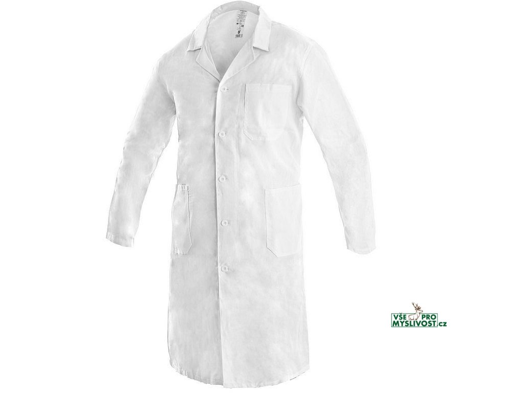 Pánský plášť s dlouhým rukávem, 3 přední kapsy, vzadu pásek s knoflíkem na stáhnutí. Doporučené použití: soukromé ordinace, kliniky a velká zdravotnická zařízení, záchranné a zdravotní dopravní služby, lázeňská zařízení, ústavy sociální péče, lékárny, školy se zdravotnickým a gastro zaměřením.