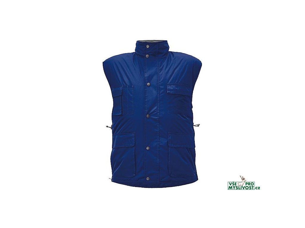 • zateplená nepromokavá pánská zimní vesta • prodloužený díl na zádech • polyesterový materiál s mechanicky odolnou úpravou RipStop • 2 přední kapsy, 2 náprsní kapsy • spodní lem ke stažení na šňůrku • na bocích je polohování na zip pro regulaci obvodu vesty