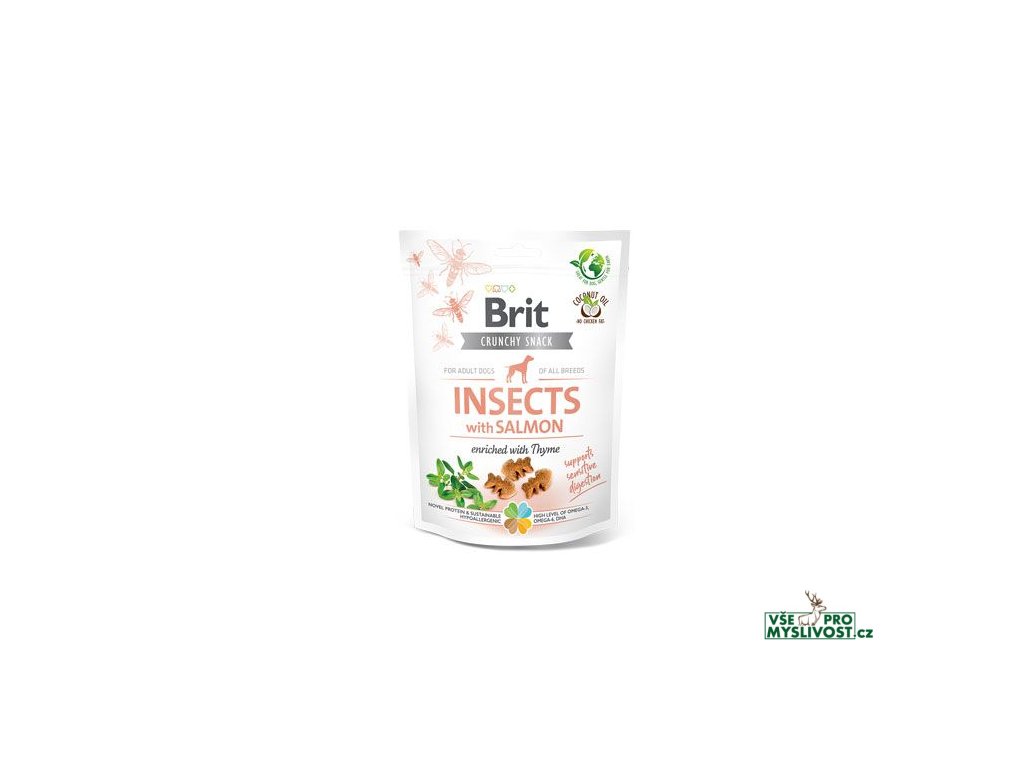 Funkční křupavé pamlsky s hmyzem a lososem. Obohaceno o tymián.- Pro úpravu citlivého zažívání