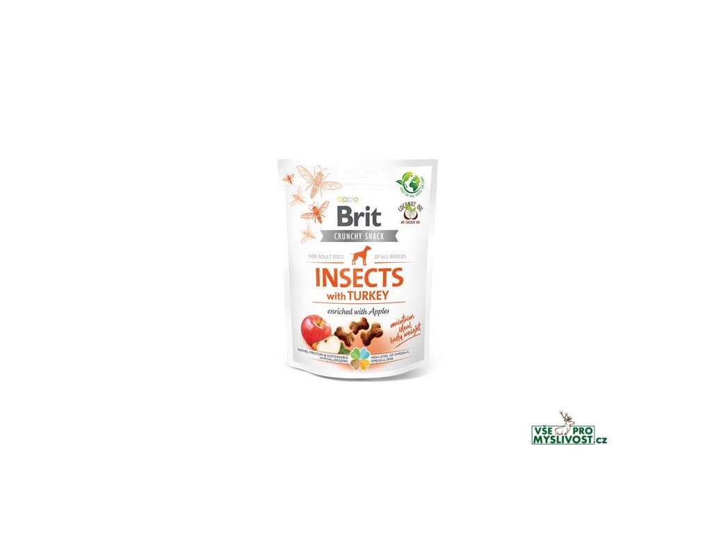 Funkční křupavé pamlsky s hmyzem a krůtím. Obohaceno o jablka.- Pro udržení ideální tělesné hmotnosti