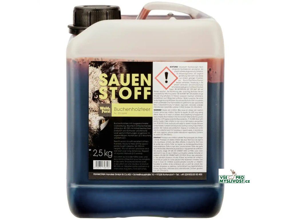 Bukový dehet pro natírání na stromy. Zvěř je lákána na velké vzdálenosti k vnadišti či ke kališti. Bukový dehet je rovněž vhodný pro odstranění kožních parazitů, zejména u černé a vysoké zvěře.