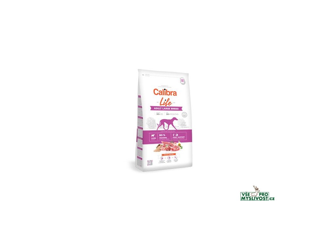 Calibra Dog Life Adult Large Breed Lamb je krmivem pro dospělé psy (nad 30 kg) velkých plemen s jehněčím masem. Hypoalergenní složení s nízkým obsahem obilovin (pouze rýže) je vhodné i pro citlivé zažívání. Velikost granulí je přizpůsobena fyziologické potřebě velkých psů. Kvalitní jehněčí protein je součástí bílkovin živočišného původu, které tvoří celých 80 % z celkového obsahu bílkovin v receptuře. Receptura je sestavena jako monoproteinová - pouze jeden zdroj živočišných bílkovin. Chondroprotektiva průběžně pečují o namáhaný kloubní aparát psů velkých plemen. A o správnou funkci trávicího traktu se postarají prebiotika a také extrakt z Yuccy schidigera podporující střevní mikroflóru a výrazně redukující plynatost v zažívacím traktu.Funkce hlavních aditiv: