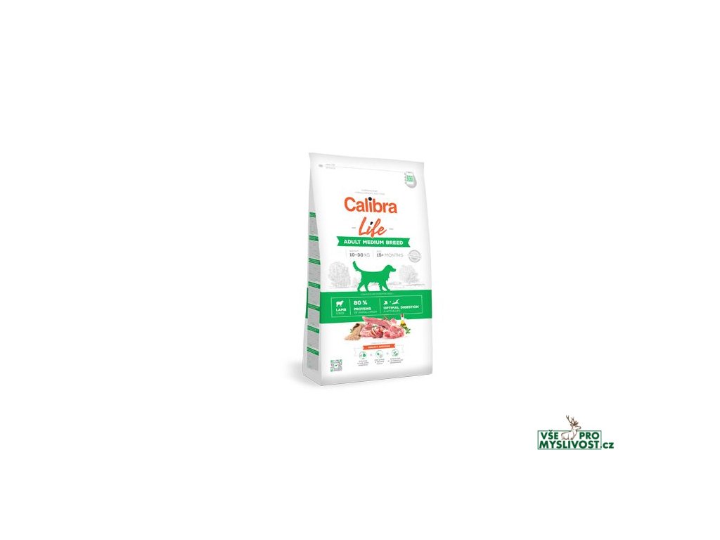 Calibra Dog Life Adult Medium Breed Lamb je krmivo pro dospělé psy středních plemen (10-30 kg) s jehněčím masem. Tato receptura s nízkým obsahem obilovin (pouze rýže) je hypoalergenní a lehce stravitelná. Vysokou výživovou hodnotu krmiva zajišťují bílkoviny živočišného původu, které tvoří 80 % z celkového obsahu bílkovin. Receptura je sestavena jako monoproteinová - pouze jeden zdroj živočišných bílkovin. Přidali jsme prebiotika a probiotika k péči o optimální zažívání, a tím i stimulaci a posílení imunitního systému psa, který je potřebný pro jeho aktivní život. Extrakt z Yuccy schidigera s detoxikačními účinky přispívá ke snižování plynatosti. Pro správnou funkci organismu a prevenci onemocnění je součástí zdraví prospěšných aditiv v receptuře i vybraný mix vitaminů a minerálů.Funkce hlavních aditiv