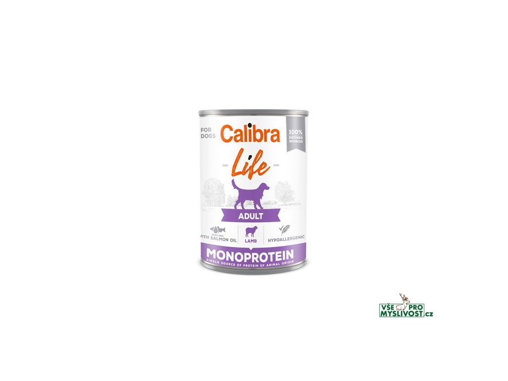 Calibra Dog Life Adult Lamb – receptura konzervy s jehněčím je kompletním krmivem, které je určené pro dospělé psy.Hypoalergenní receptura je založena na jediném druhu proteinu, je sestavena z omezeného počtu ingrediencí. Složení konzervy je bezlepkové, obsahuje jen suroviny té nejvyšší kvality, které jsou ze 100% definovaných zdrojů, což spolu s nízkým obsahem rýže má vliv na lehkou stravitelnost.
