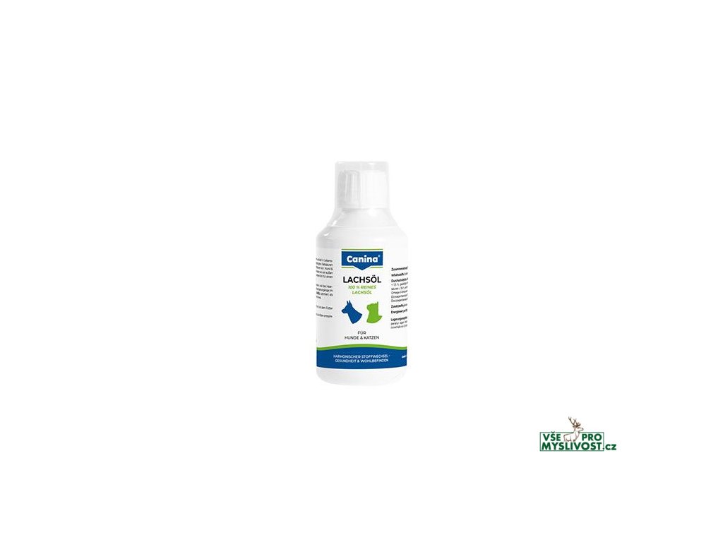 Doplňkové krmivo pro psy a kočky, stoprocentní lososový olej získávaný ze suroviny potravinářské kvality.Je bohatý na vysoce nenasycené mastné kyseliny (eikosapentaenovou, dokosapentaenovou), které si organismus masožravce nedokáže vytvořit a musí je proto získat potravou, neboť jsou esenciální (životně nezbytné) pro zdárný průběh metabolických reakcí v organismu.