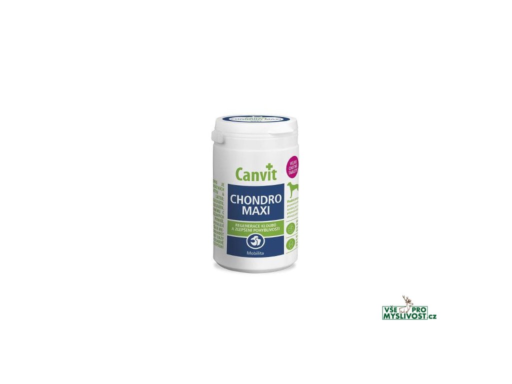 Canvit Chondro Maxi je kombinací unikátních chondroprotektivních a bioaktivních látek pro velké psy: chondroitin sulfátu, glukosamin sulfátu, kolagenu, vitamínu C a organicky vázaných stopových prvků. Tyto látky posilují chrupavku, zvyšují mechanickou odolnost kloubů, zpevňují vazy a šlachy a celkově přispívají ke zlepšení pohyblivosti.