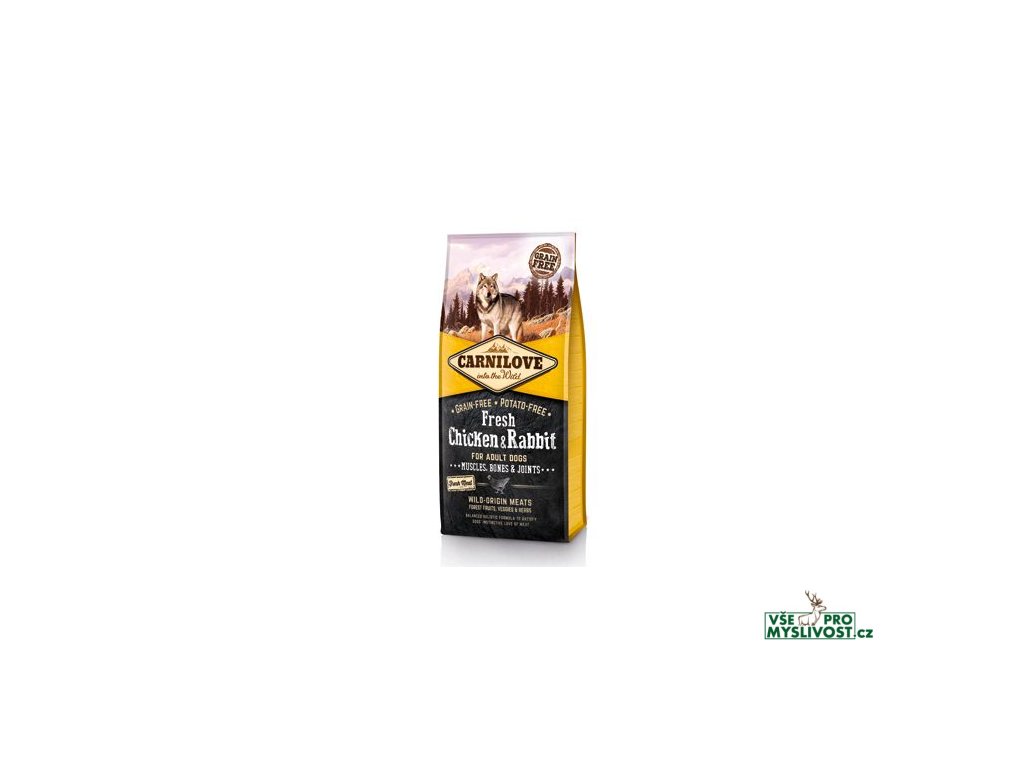Carnilove Fresh Kuře & Králík superprémiové, holistické krmivo bez obilovin a brambor s čerstvým masem pro dospělé psy. Krmivo bylo navrženo s respektem k původní přirozenosti psů tak, aby jim poskytl vyváženou stravu bohatou na čerstvé maso v kombinaci s různými druhy zeleniny, ovoce a bylin