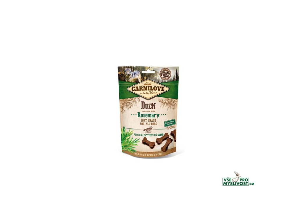 Carnilove poloměkký kachní pamlsek s rozmarýnem. Pamlsek pro zdravé zuby a dásně, bez obsahu obilovin a brambor je vhodný pro psy všech plemen.- BEZ OBILOVIN – MASO S EXOTICKOU PŘÍCHUTÍ – BEZ PŘIDANÉHO CUKRU