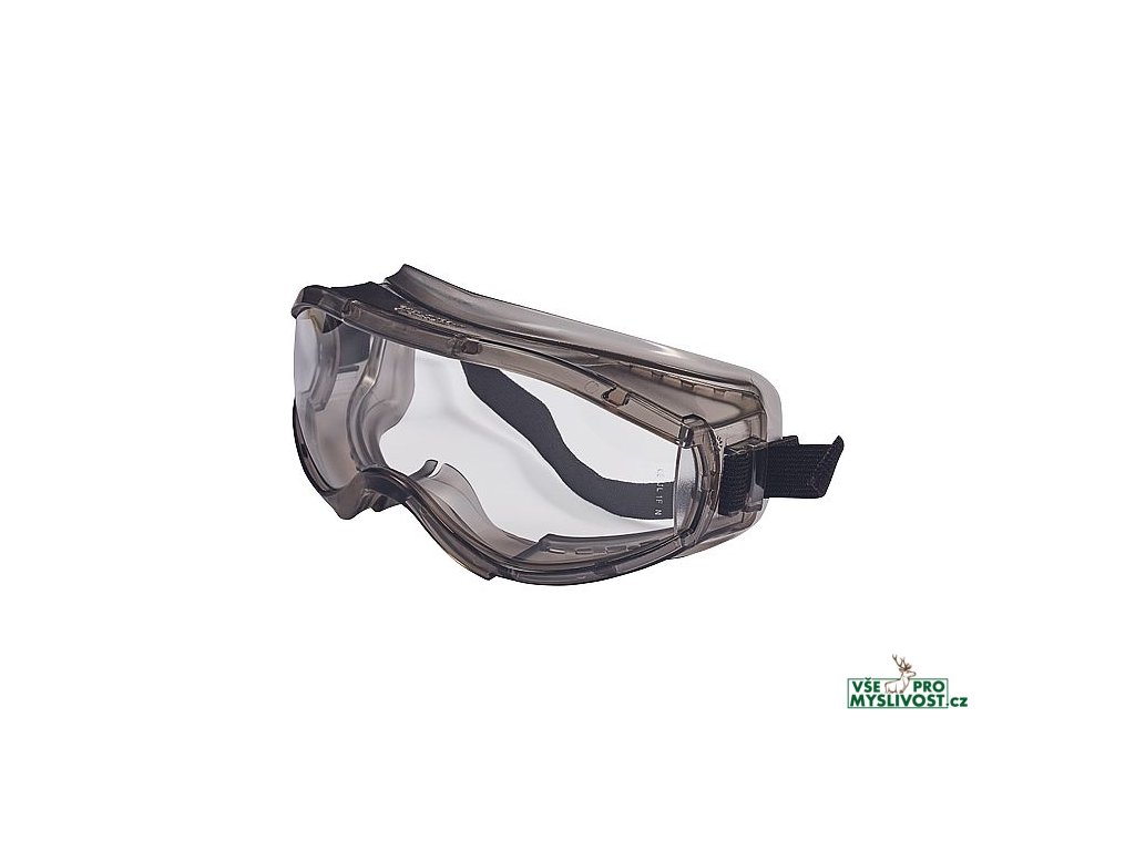 ochranné, nepřímo větrané brýle s nemlživou úpravou a tvrzeným zorníkem tř. 1F N; zorné pole 150°; brýle: F