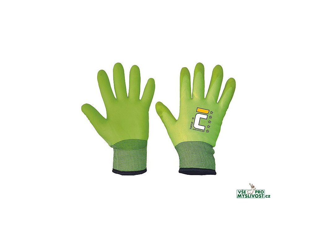 • zateplené voděodpudivé pletené signální nylonové rukavice s nánosem PVC v dlani a na prstech • komfortní froté zateplení • s pružnou manžetou