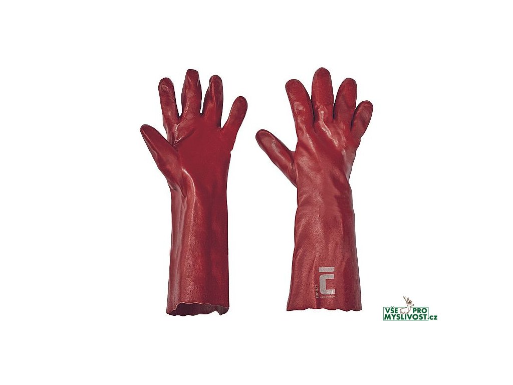 • rukavice šité z bavlněného úpletu • máčené v PVC • v délce 45 cm