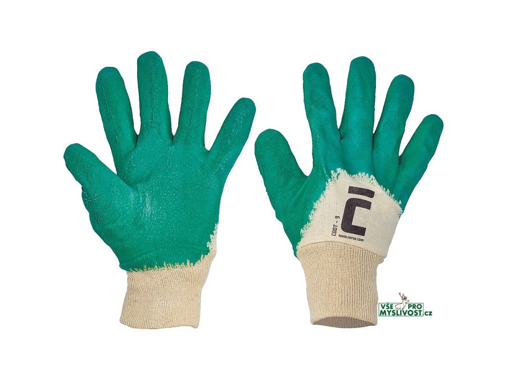 • rukavice šité z bavlněného úpletu • s protiskluzovým povrchem • pružný úplet na zápěstí • pogumované dlaně a prsty