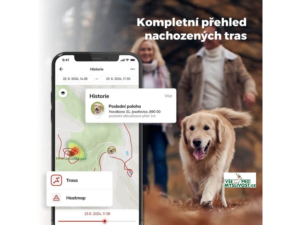 Trasování čtyřnohého parťáka funguje na multisystémovém sledování polohy pomocí satelitů a zasílání dat do vašeho mobilního telefonu. Nejste tak omezeni žádnou vzdáleností.