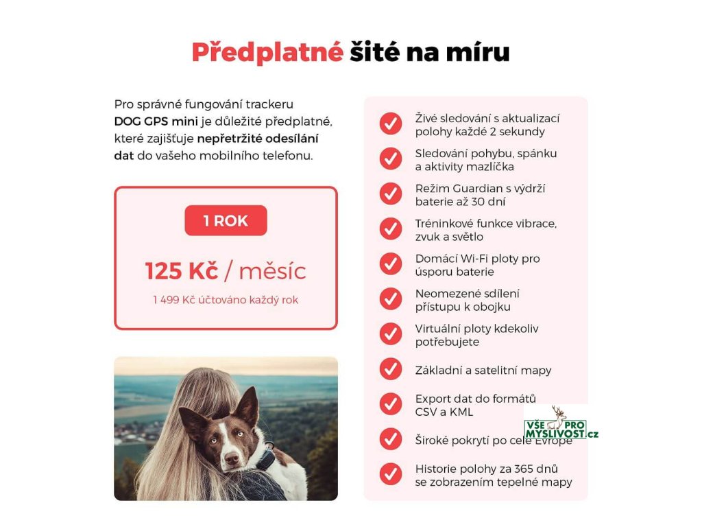 {INFOBOX:Při aktivaci lokátoru DOG GPS mini budete přesměrování na platbu ročního předplatného za 1499,- Kč vč. DPH, které zajišťuje nepřetržité odesílání dat o každé poloze vašeho mazlíčka do aplikace Pet Tracker ve vašem mobilním telefonu. Při zakoupení předplatného v App Store se cena může lišit, neboť je řízena pravidly společnosti Apple.}