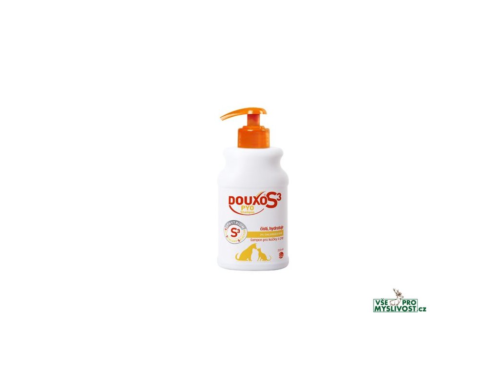 Pouze pro vnější použití. Namočte zvíře teplou vodou a aplikujte Douxo S3 Pyo šampon na srst celého povrchu těla až do vytvoření husté pěny. Důkladně promasírujte srst zvířete. Šampon nechte působit 5-10 minut, potom pečlivě opláchněte vodou. Podle potřeby je možné šamponování zopakovat. Zabraňte kontaktu s očima.