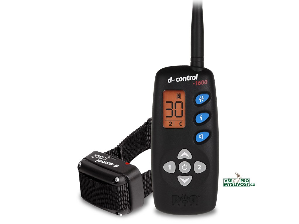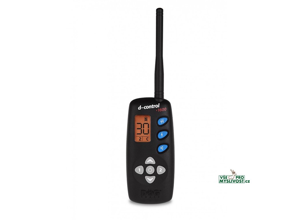 Dogtrace d-control 1600 s dosahem 1600 m, pro všechny plemena, 30 úrovní, LCD displej. Vysílač disponuje funkcí zvuk, stimulační impuls s úrovní 0 - 30 a nastavitelný trvalý impuls (funkce booster), kde si můžete zvolit libovolnou intenzitu stimulačního impulsu, než máte navolenou u tlačítka stimulační impuls.