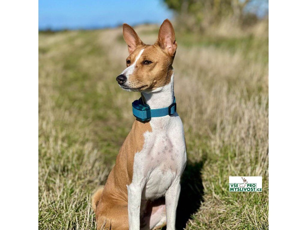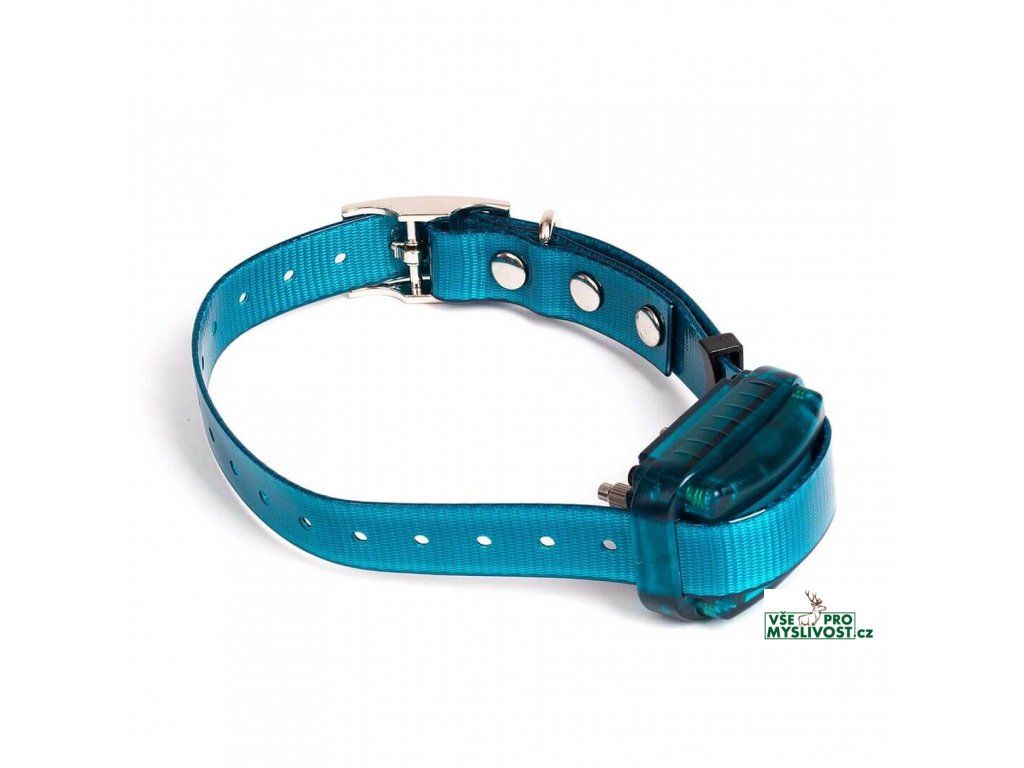 - přijímač s plastovým modrým řemenem (70 cm) (Kroužek na obojku slouží pouze pro přívěsky, prosím nepoužívejte k voděním psa.)
