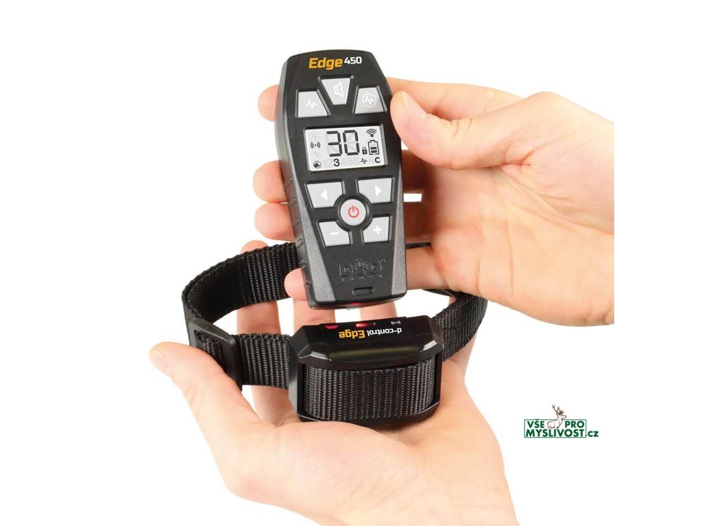 Vysílač d-control Edge 450 je voděodolný. Přehledný LCD displej umožňuje snadnou orientaci v nastavení funkcí. Pomocí nové funkce vibrační odezvy, budete vědět, že signál byl vyslán k pejskovi. Proti nechtěnému mačkání tlačítek v kapse jednoduše aktivujte funkci zámek kláves. Stimulační režim můžete deaktivovat pomocí nastavitelného tlačítka na ovladači a ze zařízení se rázem stává plnohodnotný vibrační obojek se zvukovým signálem.