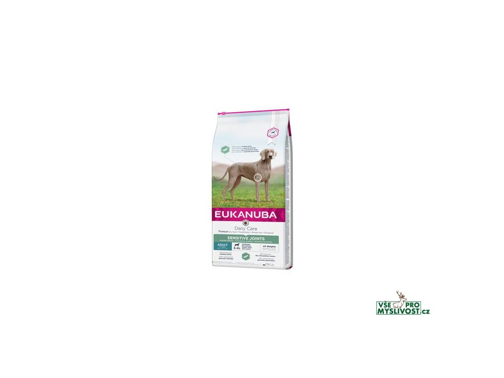 Schopnost svobodného pohybu je znakem dobrého zdraví, ale u mnoha psů mohou citlivé klouby a nadměrná hmotnost omezit aktivity, které z nich dělají psy. Nemoci kloubů jsou vlastně zdravotním problémem číslo jedna mezi psy velkých plemen. To, co váš pes jí, hraje klíčovou roli pro zdraví kloubů a správnou kontrolu hmotnosti. Tento fakt si uvědomovala společnost Eukanuba při tvorbě tohoto krmiva na míru: výsledkem je krmivo Eukanuba Sensitive Joints, které vašemu psovi pomůže udržet si dobrou kondici a užít si aktivní život.