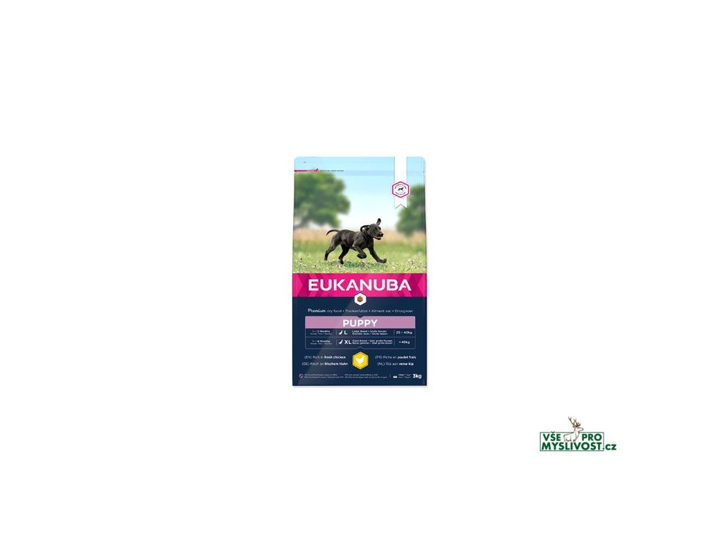 Štěňata velkých a obřích plemen rostou velice rychle a mají proto velice specifické výživové potřeby. Toto krmivo společnosti Eukanuba obsahuje uzpůsobené množství proteinů, vápníku a energie. Poskytuje všechny důležité vitamíny a minerály a podporuje vyrovnaný růst svalů a kostí štěňat velkých a obřích plemen. Obsahuje přísady vysoké kvality a velké množství živočišných proteinů, z nichž kuřecí maso představuje hlavní zdroj. NEDOPORUČUJE SE podávat jako krmivo fenám v těhotenství a laktaci v důsledku speciálně uzpůsobeného obsahu minerálů.