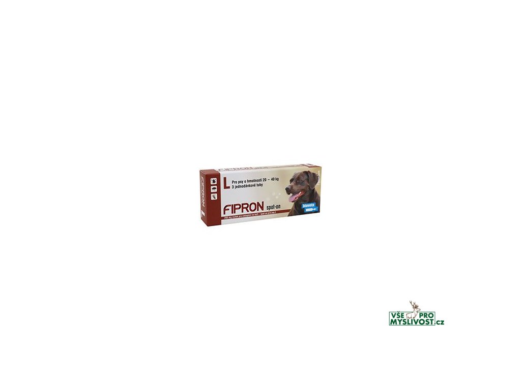 Psi o hmotnosti nad 20 a do 40 kg: obsah jedné tuby o objemu 2,68 ml (L). Takto zajistíte minimální doporučenou dávku fipronilu 6,7 mg/kg ž.hm.