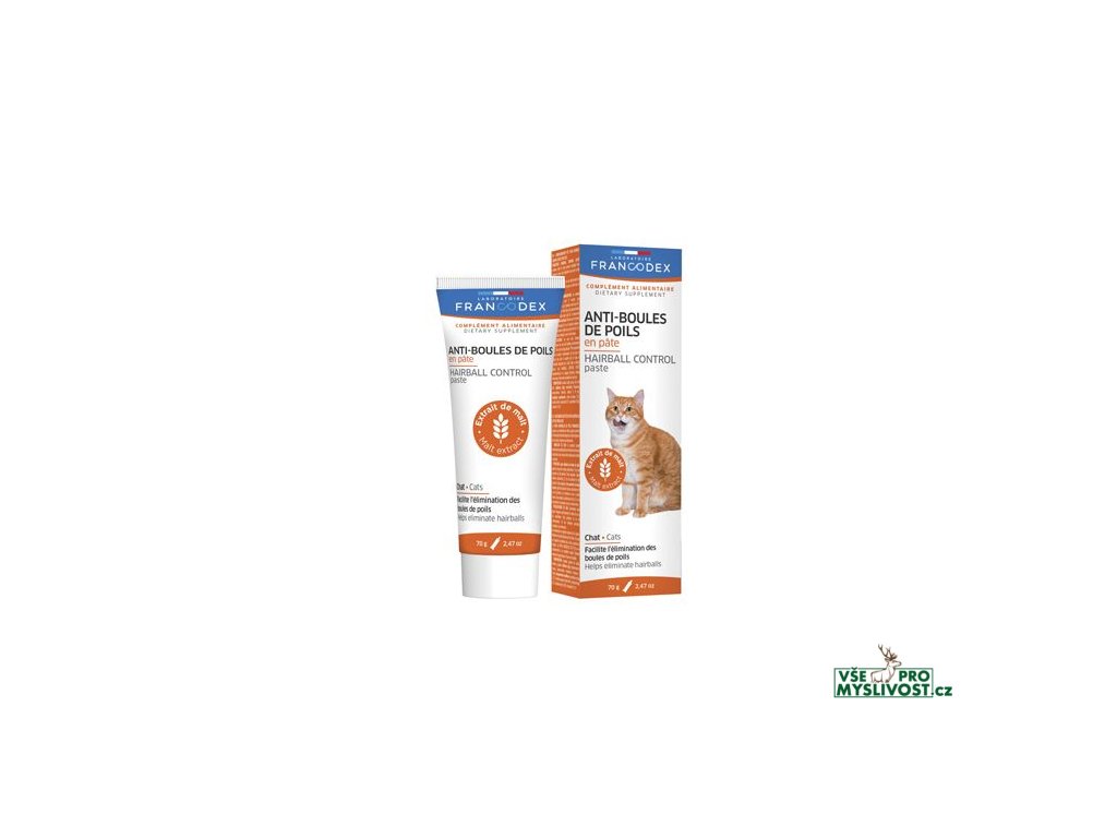 Doplňkové krmivo pro kočky. Tvorbě chlupových bezoárů lze zabránit častým česáním srsti a pravidelným užíváním pasty Hairball Control Paste podle pokynů. Kočky a koťata mohou při olizování srsti spolykat chlupy, které se mohou hromadit v žaludku a vytvářet tzv. hairball (chlupové bezoáry). Vznik bezoárů se projevuje zácpou, říháním, kašlem a zvracením.Návod k použití: Naneste pastu proti bezoárům na přední tlapky nebo na čumák, kde ji kočka může olízat. Když má vaše kočka nebo kotě hlad, olížou ji přímo z tuby nebo z vašeho prstu.