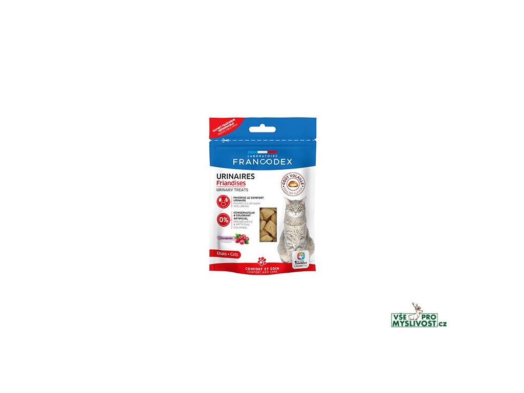Kočky přirozeně pijí velmi málo. Omezená fyzická aktivita, věk, stres a nadváha jsou některé z faktorů, které mohou vést k rozvoji močových problémů. Pamlsky FRANCODEX URINARY TREATS, které jsou vyrobeny s kombinací rostlin, obsahují brusinky, které se používají při močových potížích, šantu kočičí a aminokyseliny, které přispívají k pohodě koček.