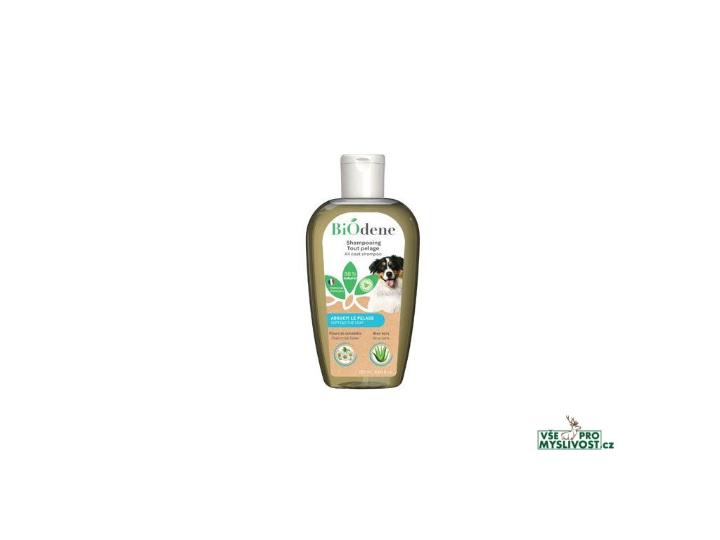 Šampon Biodene pro všechny typy srsti obsahuje výtažek z heřmánku, který má uklidňující a změkčující vlastnosti a spolu s inulinem z čekanky a derivátem guarové gumy usnadňuje rozčesávání srsti. Díky jemnému složení je přípravek vhodný pro všechny typy srsti.Návod k použití: Šampon byl vyroben z pečlivě vybraných přísad, díky nimž je velmi šetrný k pokožce vašeho domácího mazlíčka a pění o něco méně než běžný šampon. Proto se doporučuje, aby byl aplikován přímo na vašeho domácího mazlíčka bez ředění. Před použitím lahvičku dobře protřepejte. Navlhčete srst vašeho mazlíčka, aplikujte malé množství šamponu a rovnoměrně napěňte po celé srsti. Nechte chvíli působit, důkladně opláchněte a poté osušte.