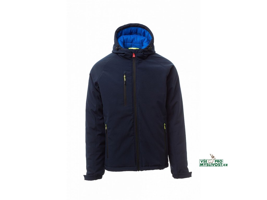 WP 8000 mm H₂O, WVT 5000 g/m² 24h. Pánský zateplený softshell, zapínání na zip s kovovým jezdcem „semi-auto lock“ a přizpůsobeným taháčkem. Neodnímatelná kapuce se stahovací šňůrkou. Elastické stahovací manžety na suchý zip. Dvě boční kapsy a jedna kapsa na hrudi na zip. Fluorescenční taháčky. Dvě vnitřní kapsy: jedna tvarovaná na zip a jedna na tablet se zapínáním na suchý zip. Spodní část stažitelná pomocí přizpůsobených zarážek.