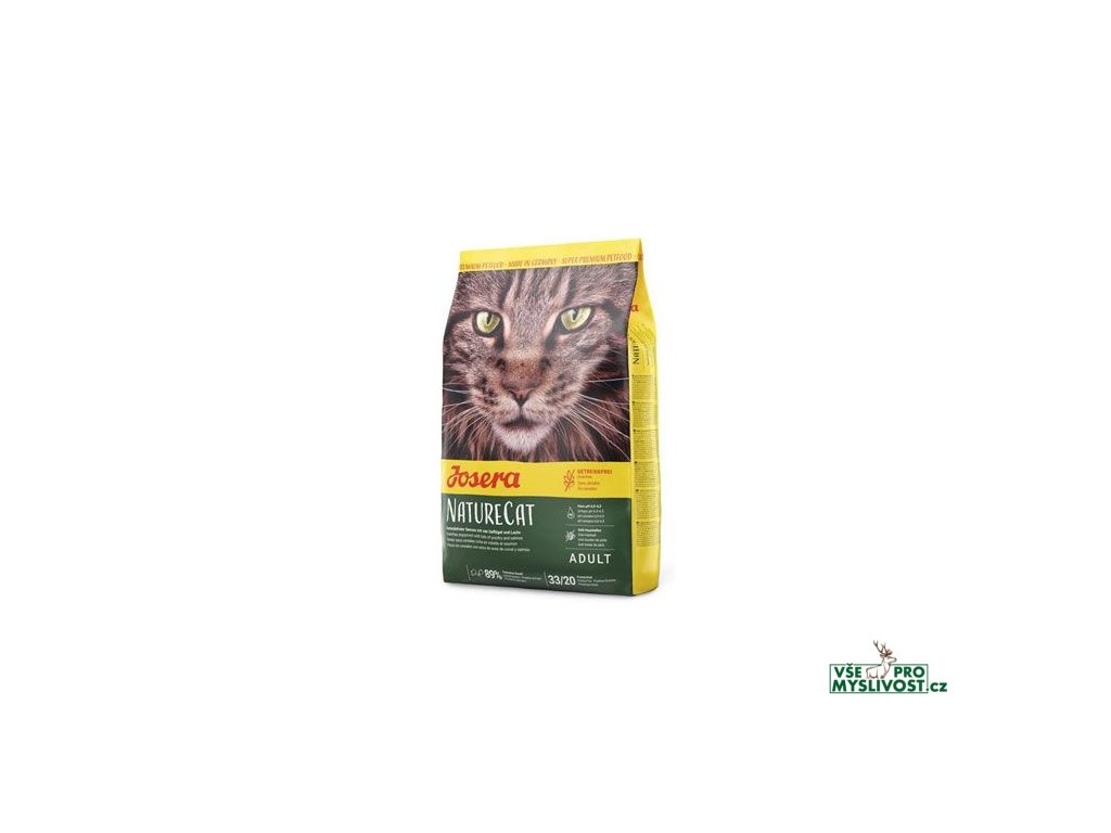 Krmivo Josera Nature Cat neobsahuje žádné obiloviny a je proto vhodné i pro nutričně citlivé kočky a koťata od 6. měsíců věku. Extra porce drůbežího masa (29%) a maso z lososa (10%) dodají organismu dostatečné množství kvalitních bílkovin. Výjimečnou chuť dodají krmivu vybrané bylinky, ovoce a zelenina. Zajistí nejen vítanou změnu v kočičím jídelníčku, ale také přísun důležitých živin. Kromě máty peprné a petrželky obohacují recepturu také arónie, borůvky, šípek a další rostlinné výtažky. Optimální poměr vápníku a fosforu a snížený obsah magnézia napomáhají regulaci pH hodnoty moči (6,0 – 6,5). Tím krmivo napomáhá redukovat tvorbu močových kamenů, což je u koček častý zdravotní problém. Křupavé granule navíc obsahují vlákninu, která napomáhá vylučování smotků chlupů. Krmivo Josera Nature Cat je obohaceno o celou řadu vitamínů, minerálních látek a stopových prvků, které přispívají ke správné funkci orgánů a podporují dobrou kondici organismu. Taurin, což je látka pro kočky zcela nezbytná, posiluje srdeční sval a zrak. Kompletní přírodní krmivo bez umělých přísad prémiové německé značky Josera, jejímž prvořadým cílem je vysoká kvalita nabízených krmiv.Josera Nature Cat v přehledu: