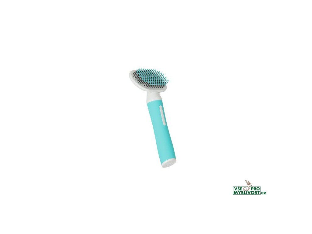 Jemný rozčesávací kartáč pro štěňata na středně dlouhou a dlouhou srst. Rozčesává, odstraňuje vypadané chlupy a vyhlazuje srst.- Díky svým pružným hrotům s plastovými konci, které jsou pro vaše štěně jemnější, se používá pro jemné vyčesávání spodní vrstvy srsti.