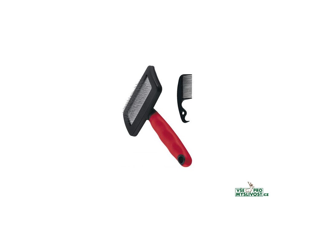 GRO 5944 je mykací kartáč pro středně a dlouhosrsté kočky a psy, vybavený ohnutými nerezovými drátěnými štětinami, které odstraňují odumřelé chlupy, což výrazně usnadňuje konečné rozčesávání srsti vašeho mazlíčka. V balení naleznete také užitečný hřeben na odstraňování odumřelých chlupů z kartáče.