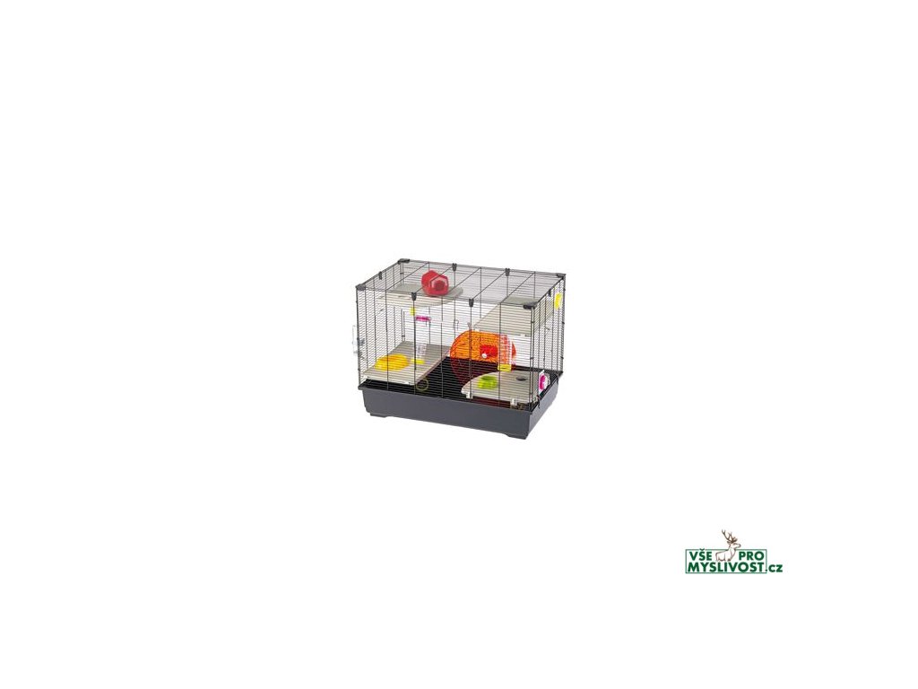 - Dodávané příslušenství: 1 láhev na pití, 1 krmítko, 1 miska, 1 domeček, 2 sady trubek, 4 police, 1 kolo pro křečka