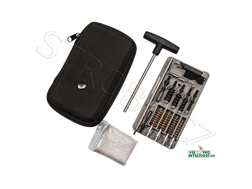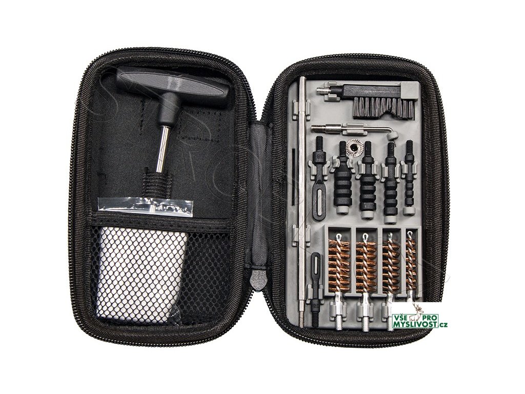 Kompaktní sada pistolového čištění Tipton Vám dává možnost vyčistit svou pistoli kdykoliv a kdekoliv. Tato sada je dodávána v polotuhém kufříku na zip, a lze ji použít na všechny obvyklé pistolové ráže od .22, přes 9mm, až do .45. Ať už hodně cestujete, čistíte na střelnici, nebo prostě jen chcete mít doma pořádek, tato souprava má ideální velikost a je dostatečně odolná. Tipton Compact Pistol Cleaning Kit.