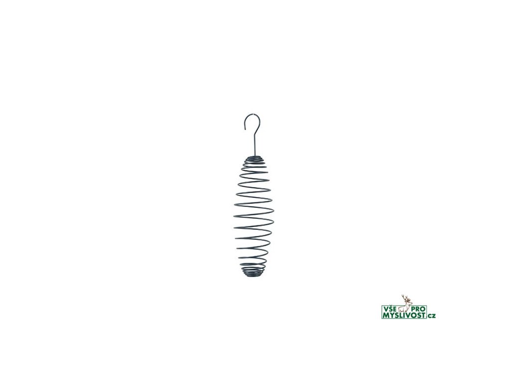 Závěsné kovové krmítko ve tvaru spirály na 4 lojové koule. Výška spirály 22cm. Dodáváno bez koulí.