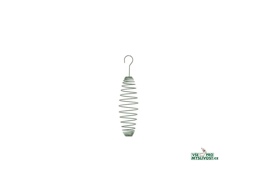 Závěsné kovové krmítko ve tvaru spirály na 4 lojové koule. Výška spirály 22cm. Dodáváno bez koulí.