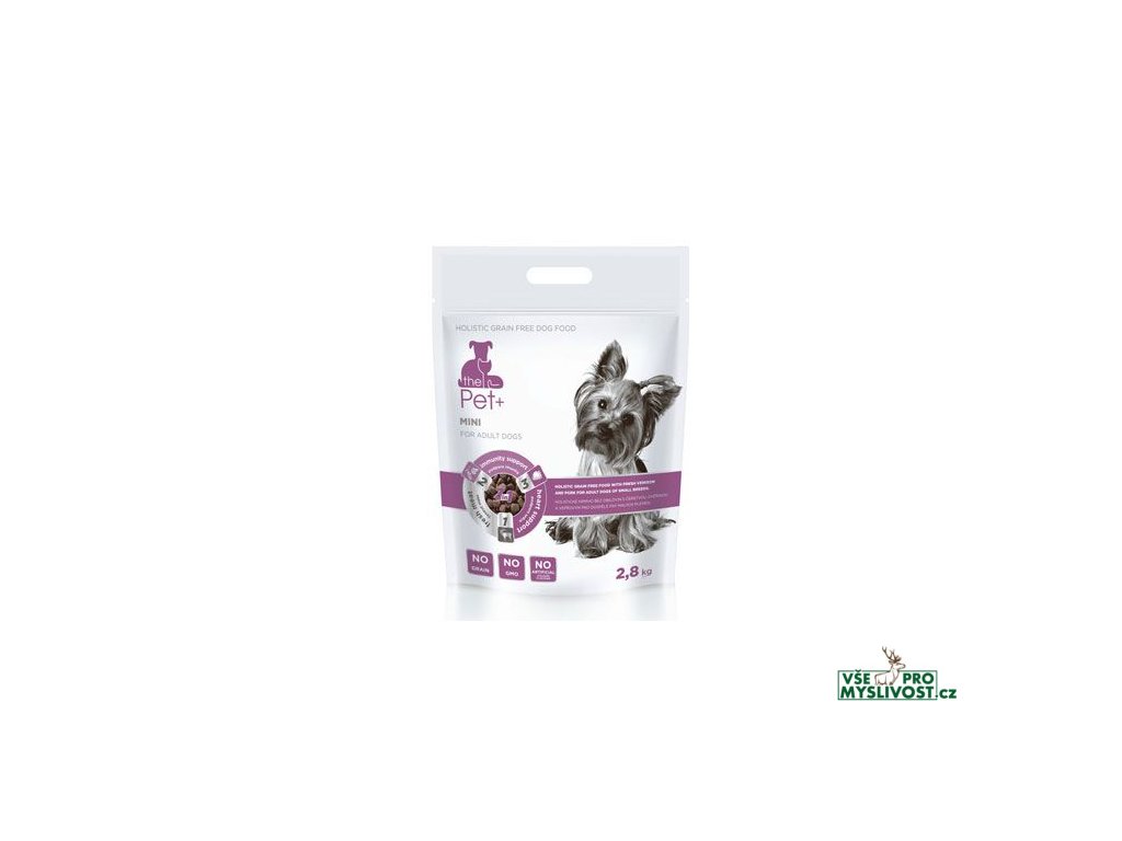 Kompletní krmivo pro dospělé psy malých plemen s čerstvou zvěřinou a vepřovým masem, které neobsahuje obiloviny. Krmivo ThePet+ Mini pro malé psy obsahuje čerstvou zvěřinu, která je výživná a lehce stravitelná, bohatá na bílkoviny a vitamíny.