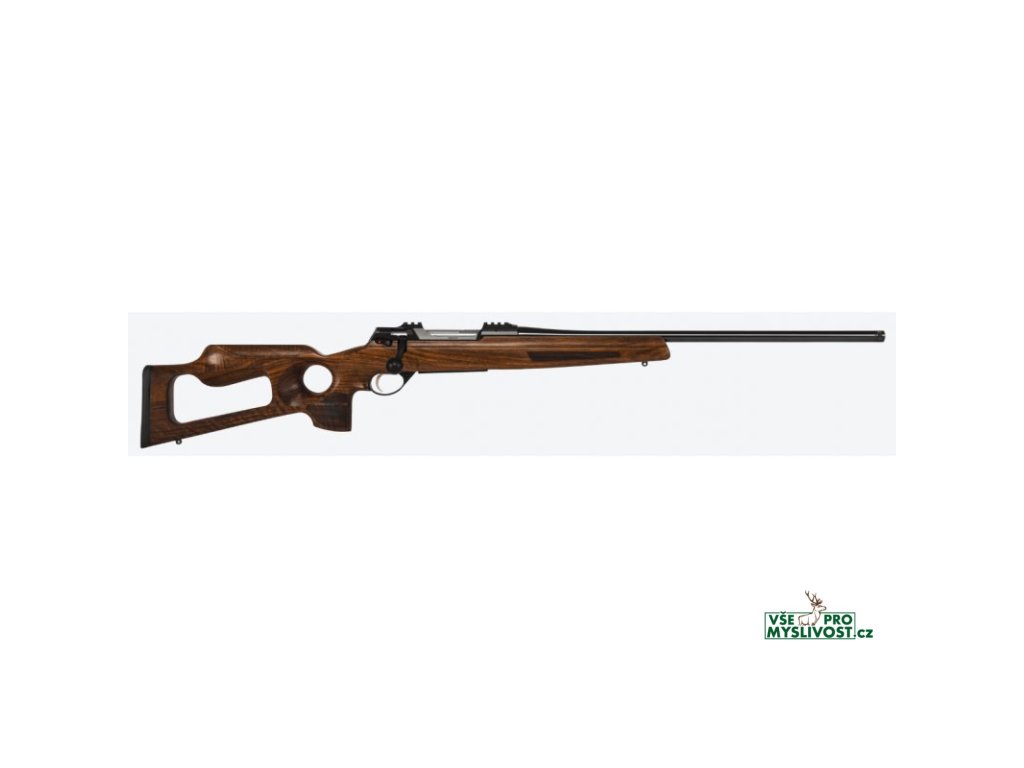 Precizní kulovnice se špičkovým beddingem v dřevěné, anatomické pažbě s otvorem pro palec tzv. Thumbhole, stavitelná spoušť 400g - 1 550g