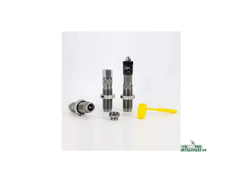- Celoformátovací matrice (Full Length Sizing Die) - Prachovací a rozhrdlovací matrice (Powder Through Expanding Die) - Mikrometricky nastavitelná usazovací matrice (Micrometer Bullet Seating Die) - Univerzální držák nábojnic (Universal Shell Holder) - Naběračka na prach (Powder Dipper) - Návod (Instructions)