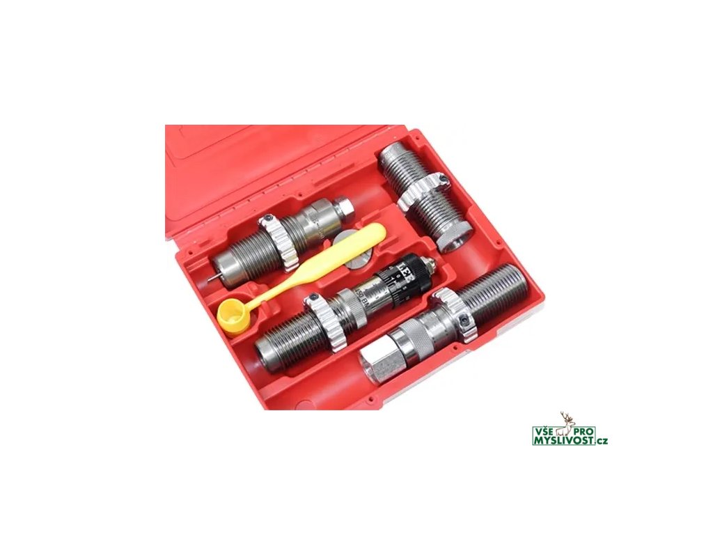 - Celoformátovací matrice (Full Length Sizing Die) - Prachovací a rozhrdlovací matrice (Powder Through Expanding Die) - Mikrometricky nastavitelná usazovací matrice (Micrometer Bullet Seating Die) - Krimpovací matrice (Factory Crimp Die) - Univerzální držák nábojnic (Universal Shell Holder) - Naběračka na prach (Powder Dipper) - Návod s daty pro přebíjení (Instructions/Load Data)