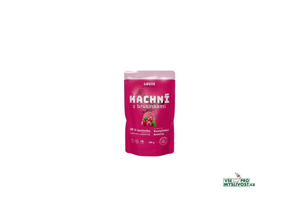 Praktická kapsička plná kompletního krmiva. Obsahuje 95 % kachního masa v pevné složce a 5 % rostlinné složky, vitamínů a minerálů. Přidané brusinky napomáhají udržení zdravé močové soustavy a podporují peristaltiku střev. A po Louie zbyde jen vylízaná miska.