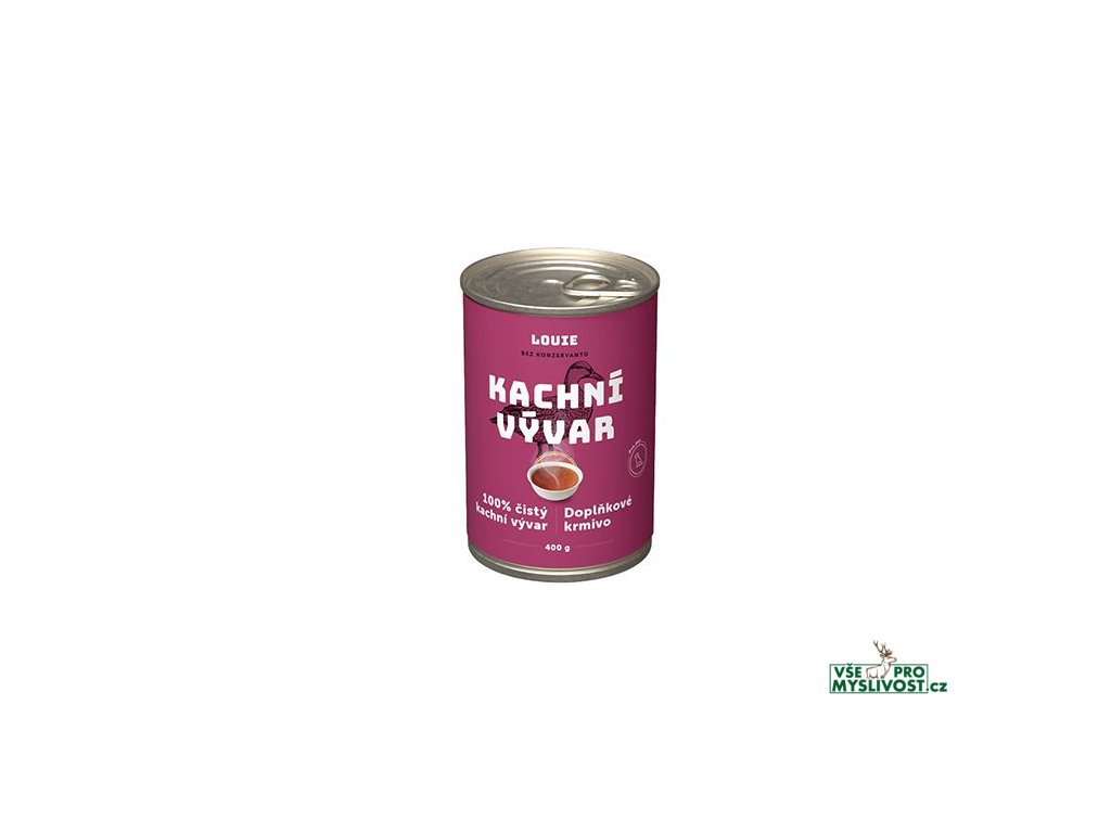 Doplňkové krmivo bez obilnin pro psy každého věku i plemene, v podobě čistého kachního vývaru je ideálním zpestřením jídelníčku Vašeho psa, např. při přeučování z granulí na konzervy nebo vhodnou dietní pochoutkou v horkých letních dnech.