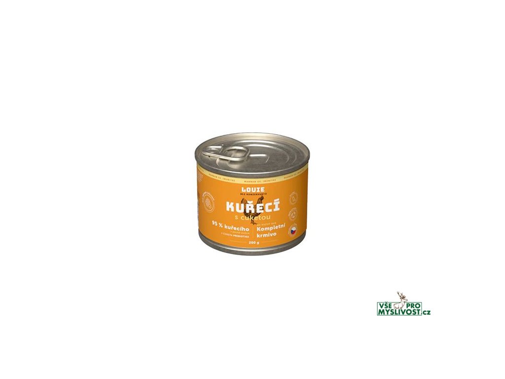 Kompletní krmivo bez obilnin pro psy každého věku i plemene, kuřecí s cuketou. Nabízí Vašemu miláčkovi možnost stravy z kvalitního masa (95 % v pevné složce). Pro podporu peristaltiky střev a simulaci minoritní rostlinné složky v potravě psů slouží příměs cukety. Krmivo neobsahuje žádné konzervanty, dochucovadla, barviva, pouze 95 % masa, 5 % cukety, vitamínů a minerálů.