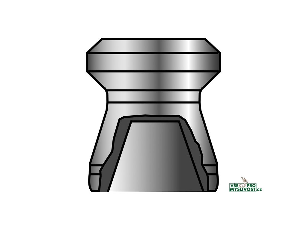 Ocelové kokily na odlévání jednotných střel (slug) do brokovnice ráže .12, určeno pro použití do košíčku.