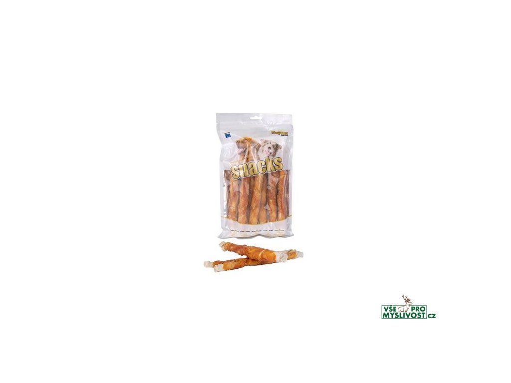 Přírodní masová pochoutka pro psy, tyčka z hovězí kůže obtočená plátkem lahodného kuřecího masa.Slouží jako odměna při hře, výcviku nebo jako doplněk stravy při cestách.
