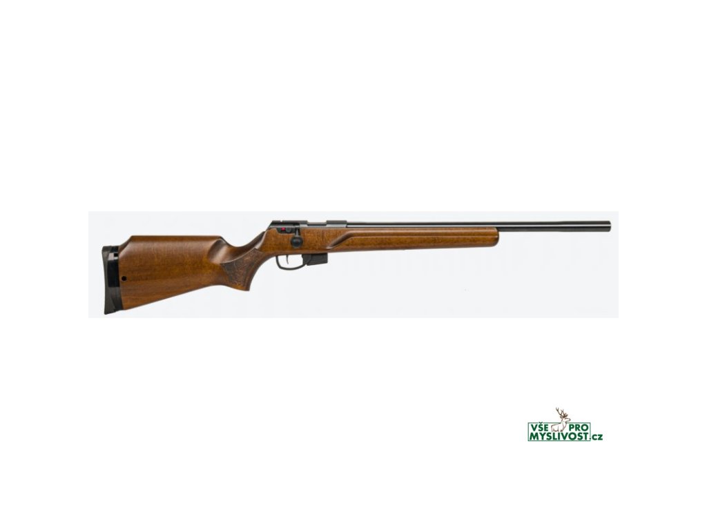 špičková malorážka pro sportovní a loveckou střelbu s jednobodou stavitelnou spouští v rozsahu 250 -450g, ořechová pažba MP R víceúčelová pro precizní střelbu, zásobník na 10 ran