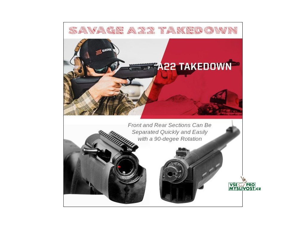 Savage Arms A22 F TakeDown je praktičná samonabíjecí malorážka v ráži .22 LR s unikátním systémem beznástrojového rozložení (TakeDown). Ideální volba pro lov, sportovní střelbu i jako lehká „range“ zbraň, kterou snadno sbalíte do batohu.